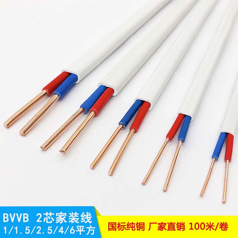 BVVB2*1.0平方電線是2根導(dǎo)線截面為1.0平方毫米的銅芯聚氯乙烯絕緣聚氯乙烯護(hù)套平型電線。