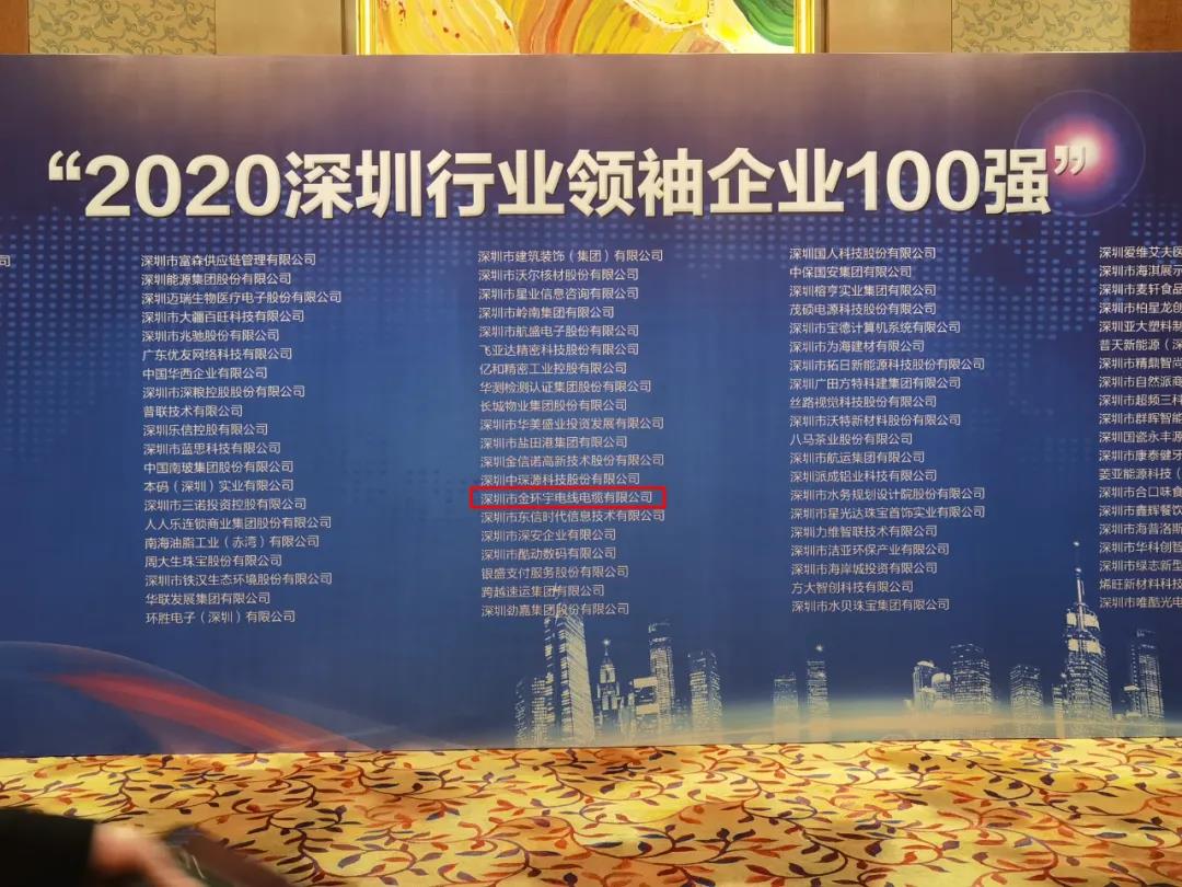 熱烈祝賀深圳市金環(huán)宇電線電纜有限公司入選“2020深圳行業(yè)領袖企業(yè)100強”